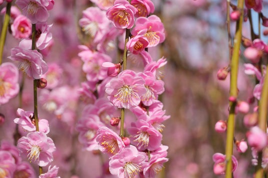 例年、見頃を迎えてから1週間~10日ほどで散り始め、その後さらに1週間~10日ほどで見頃を終え(天候により前後します)、本年の公開を終了します。散り始め以降も、花びらが静かにこぼれる様子や梅吹雪、花びらの絨毯など、終盤ならではの風景をお楽しみいただけます。見頃終盤には職人による剪定の実演も予定しています。