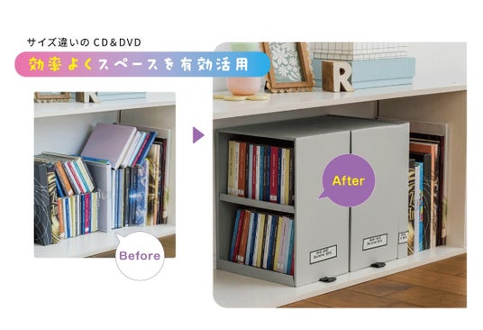 本商品の開発は、企画者自身や周囲の推し友の経験、SNS上で散見される「収納の悩み」がきっかけでした。通常盤のCDはDVDやブックタイプのアルバムに埋もれたり、サイズの違いから高さや奥行きに無駄なスペースが生まれていました。また初回限定盤の豪華なアルバムやK-POPのアルバムは、通常盤とはサイズが異なり大きいものが多く、一般的なCDラックには収まりきらないことも。そのほか会報誌や雑誌の切り抜きがA4サイズに収まらないなど、サイズ感がそれぞれ特徴的な推し活の収納あるあるから、このお悩みに対応できる推し活専用収納アイテムが誕生しました。
