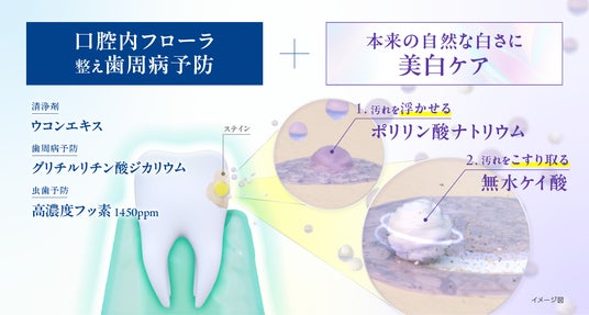 今回、40~60代女性の42%※2が悩む「歯の着色」に着目し、基本機能である口腔内フローラを整え歯周病※1を予防する機能に加え、美白ケアができる「クルクリンPGガード 美白ケアプラスペースト」を新発売いたします。