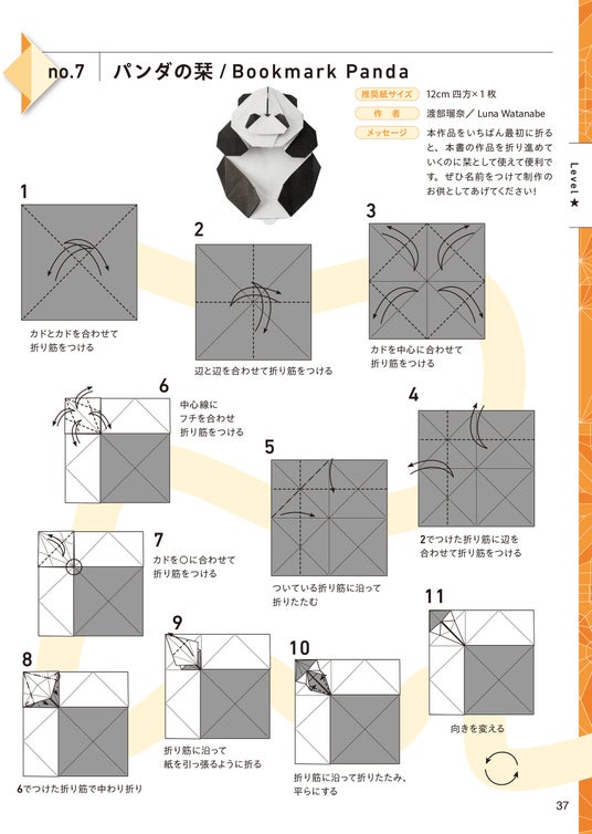 掲載している作品は難しいものばかりではありません。小さなお子様でも十分取り組むことができます。その一方で、中には200工程にも及ぶきわめて難しい作品も収録しました。中高生や大人、マニア層の方にも自信をもっておすすめできます。簡単なものからステップアップしていける構成のため、難しい折り紙をはじめてみたいけれど敷居が高く感じる・最初の一冊がわからない、といった方にもおすすめです。Level ★★/中級は初級よりもプロセスが格段にアップします。