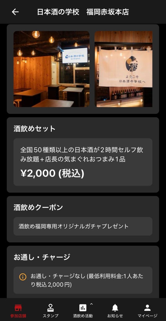 各店舗の酒飲めセットやお通し代をアプリで確認できます。