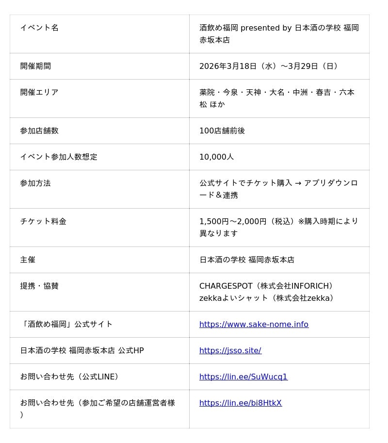 ※リストバンドは開催期間中「日本酒の学校 福岡赤坂本店」にてお受け取りいただけます。