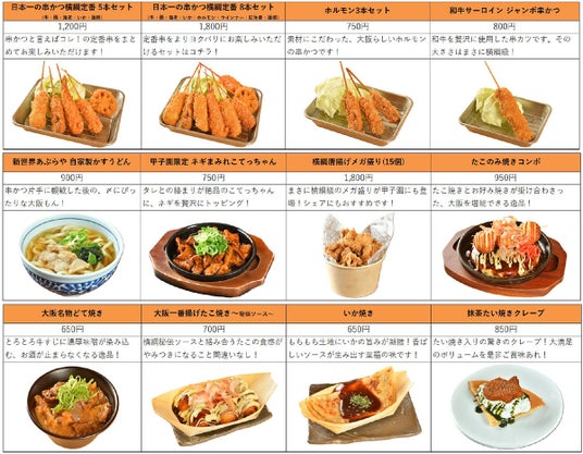 新世界のメインストリートに本店を構える「日本一の串かつ 横綱」は、新世界の風景の一部となっており、阪神甲子園球場でもその特徴的な店構えそのままに出店します。店舗名物のジューシーに揚がった串かつは、職人が試行錯誤を繰り返して開発した秘伝のソースと相性抜群。「大阪名物どて焼」、たこ焼きとお好み焼きが贅沢に組み合わされた「たこのみ焼きコンボ」など、大阪を感じることができるメニューも数多くご用意しています。さらに、阪神甲子園球場限定の「ネギまみれこてっちゃん」など、お酒の肴にぴったりのおつまみや、スイーツも多数取り揃えていますので、老若男女問わず、食い倒れ必至でお楽しみいただけます。
