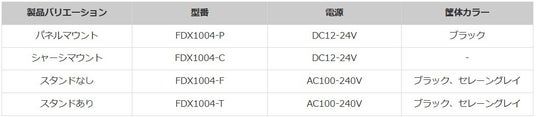 画像左からパネルマウントモデル、シャーシマウントモデル、スタンドなしモデル、スタンドありモデル