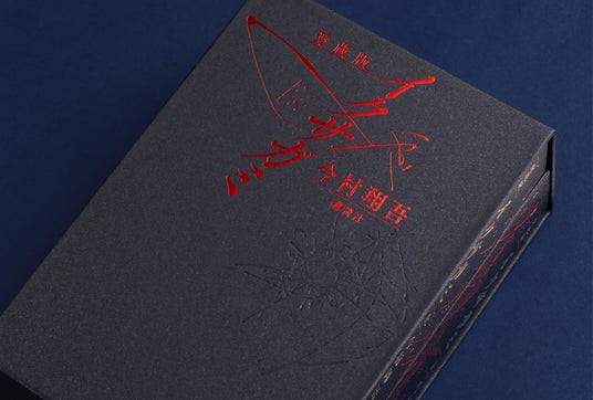 化粧函に赤箔で描かれるのは、流麗な太刀筋。空押しで弾痕を表現しています