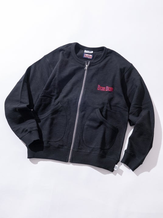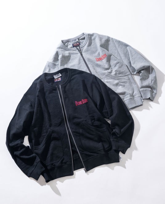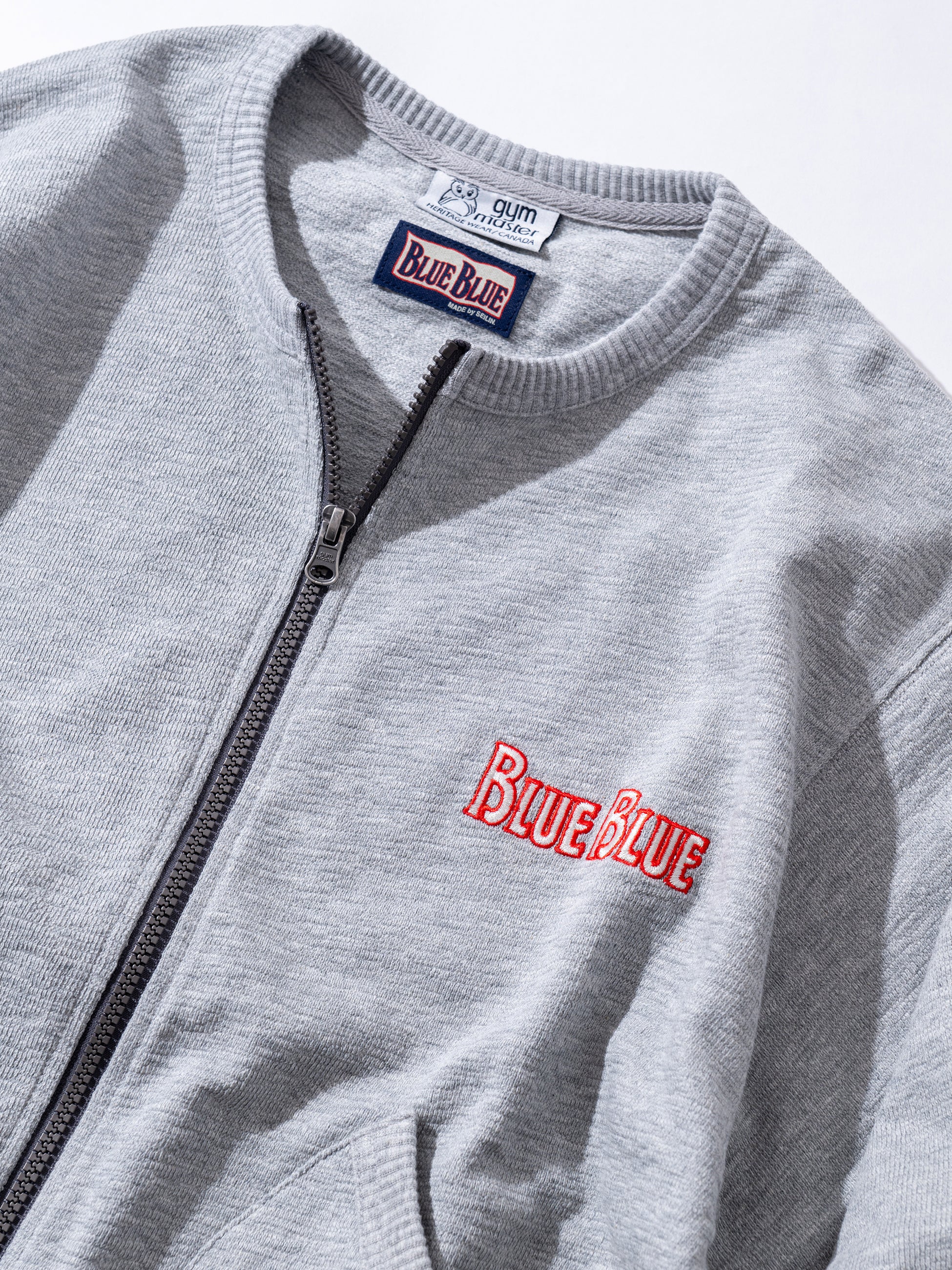 胸元に〈BLUE BLUE〉のロゴ刺繍、サイドやポケットに〈gym master〉のピスネームを配置。背裏には両ブランドのオリジナルロゴプリントを施し、別注ならではの仕様に仕上げています。