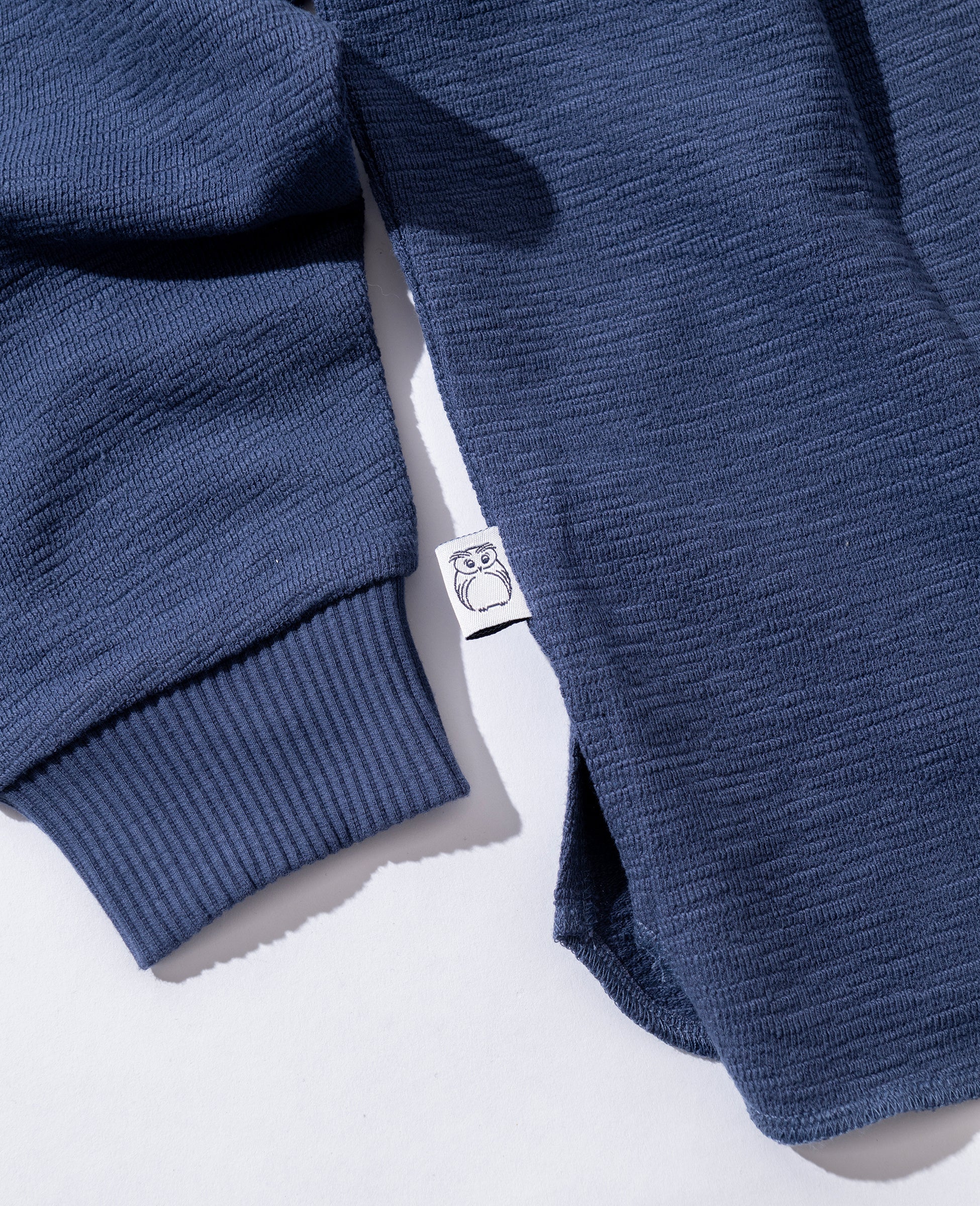 今シーズンは、コットン100%のブロックインレイ素材を使用したロングスリーブTシャツ、ジップカーディガン、イージーパンツの3型を展開します。