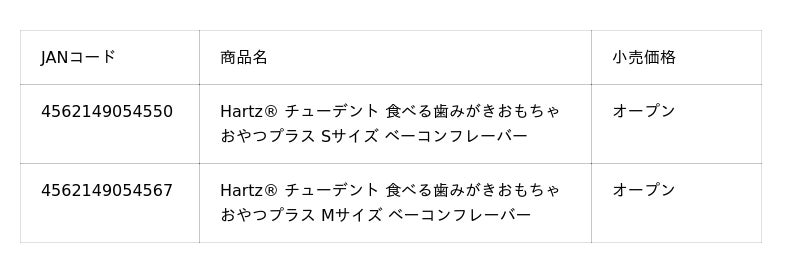 住商アグロインターナショナル株式会社(本社:東京都千代田区、代表取締役社長:田中 卓)は、“歯みがき遊び”できる「Hartz(R) チューデント 食べる歯みがきおもちゃ おやつプラス」を2026年春より全国で発売いたします。
