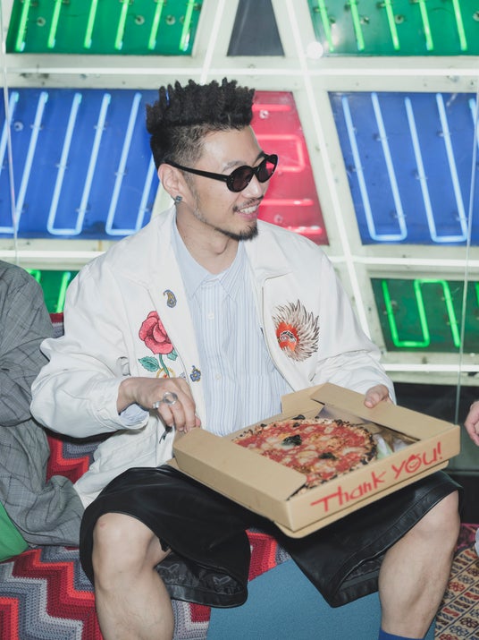 食空間に流れる温かな雰囲気と日々開催されるイベントに集う人々が見せる自由なエネルギーが共存する『心斎橋ネオン食堂街』。服部氏が手掛ける本ビジュアルでは、その和やかさと荒々しさが混ざり合う独特の空気を表現する。