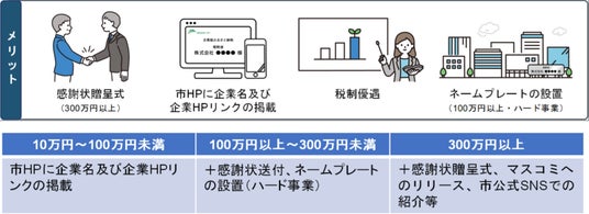 本プロジェクトにご賛同いただいた企業様には、感謝の意を込めて以下のベネフィットをご用意しております。