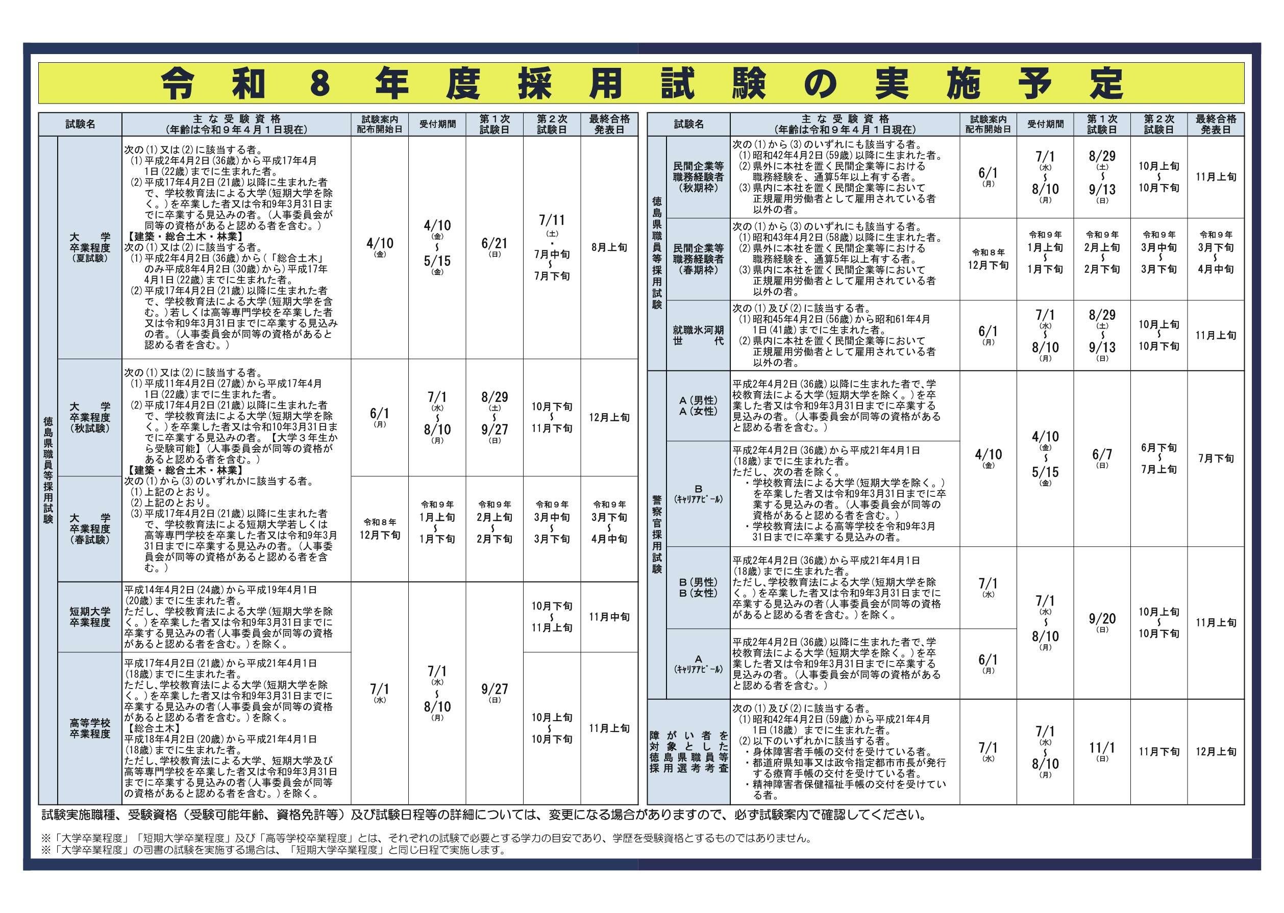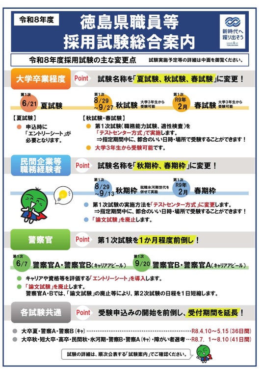 「令和8年度徳島県職員等採用試験総合案内」を公表しました。