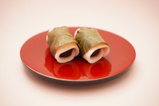 もちもち食感の薄い生地であんを包み、塩漬けの桜葉で巻きました。