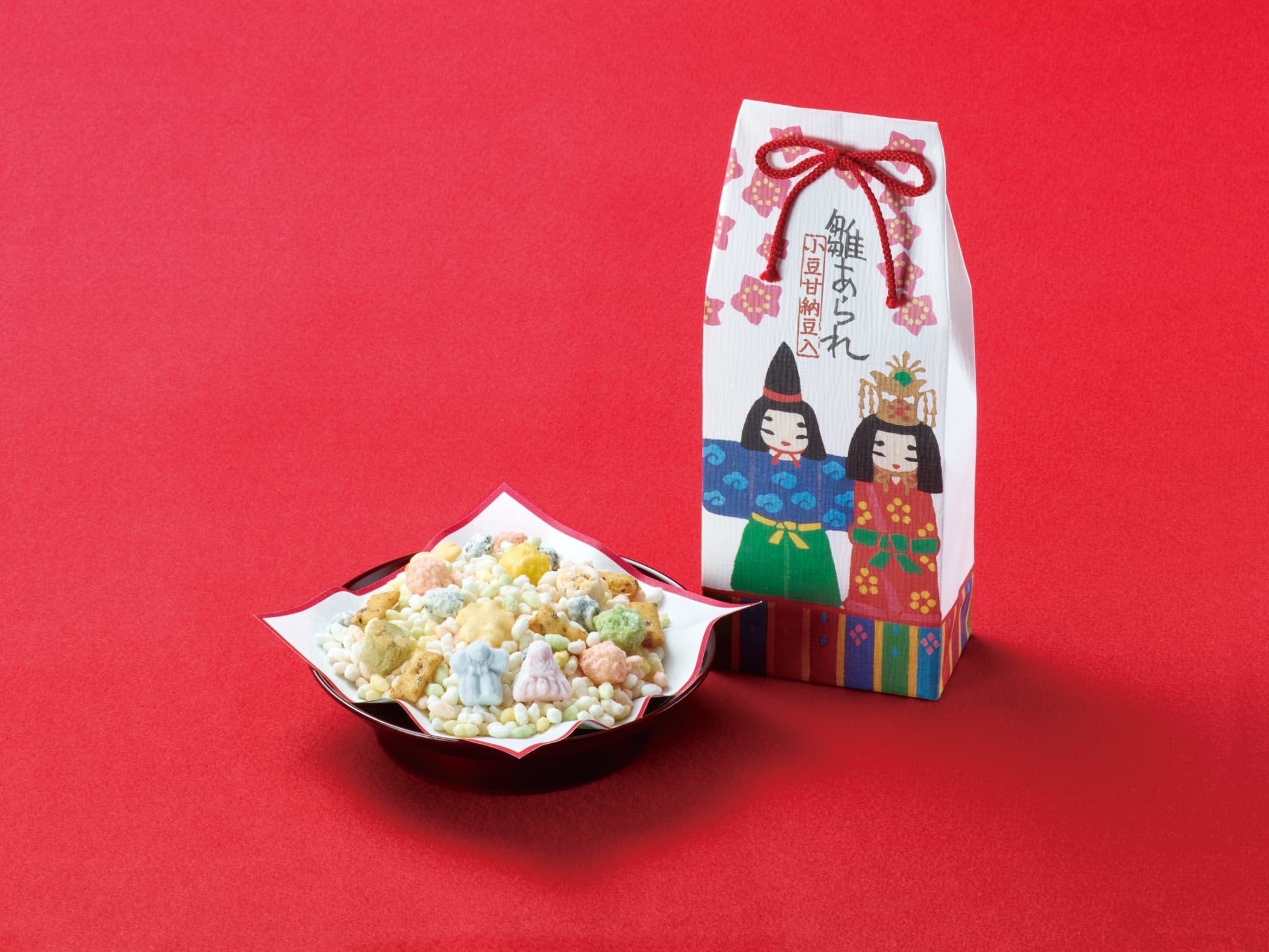 〈銀座あけぼの〉ひなあられ(8種入) 648円(ひなあられ69g、小豆甘納豆28g)/1階