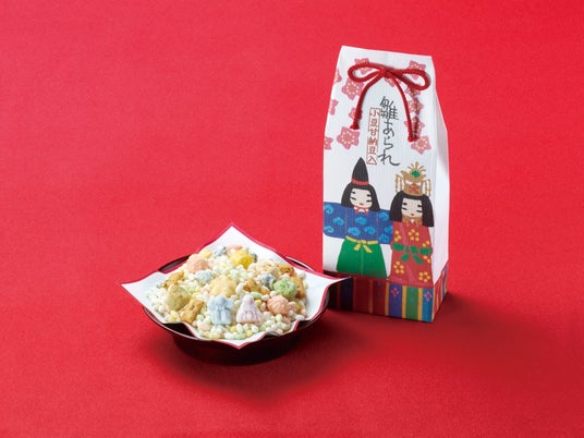 3色あられや可愛い吹寄せの入った特製のひなあられです。