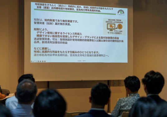 この考え方が示しているのは、知財が法務処理ではなく「社会実装の設計」という点です。デザインが価値を生むプロセスだとすれば、知財はその価値を持続可能な関係と経済活動に変換するプロセスで、このTDRIの実践は、地域プロジェクトにおいても、創造と運用を同時に設計する必要性を示唆するものとなりました。