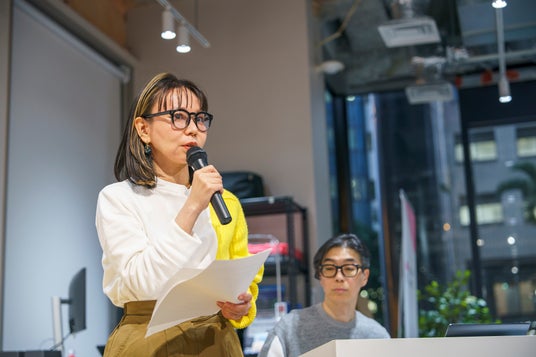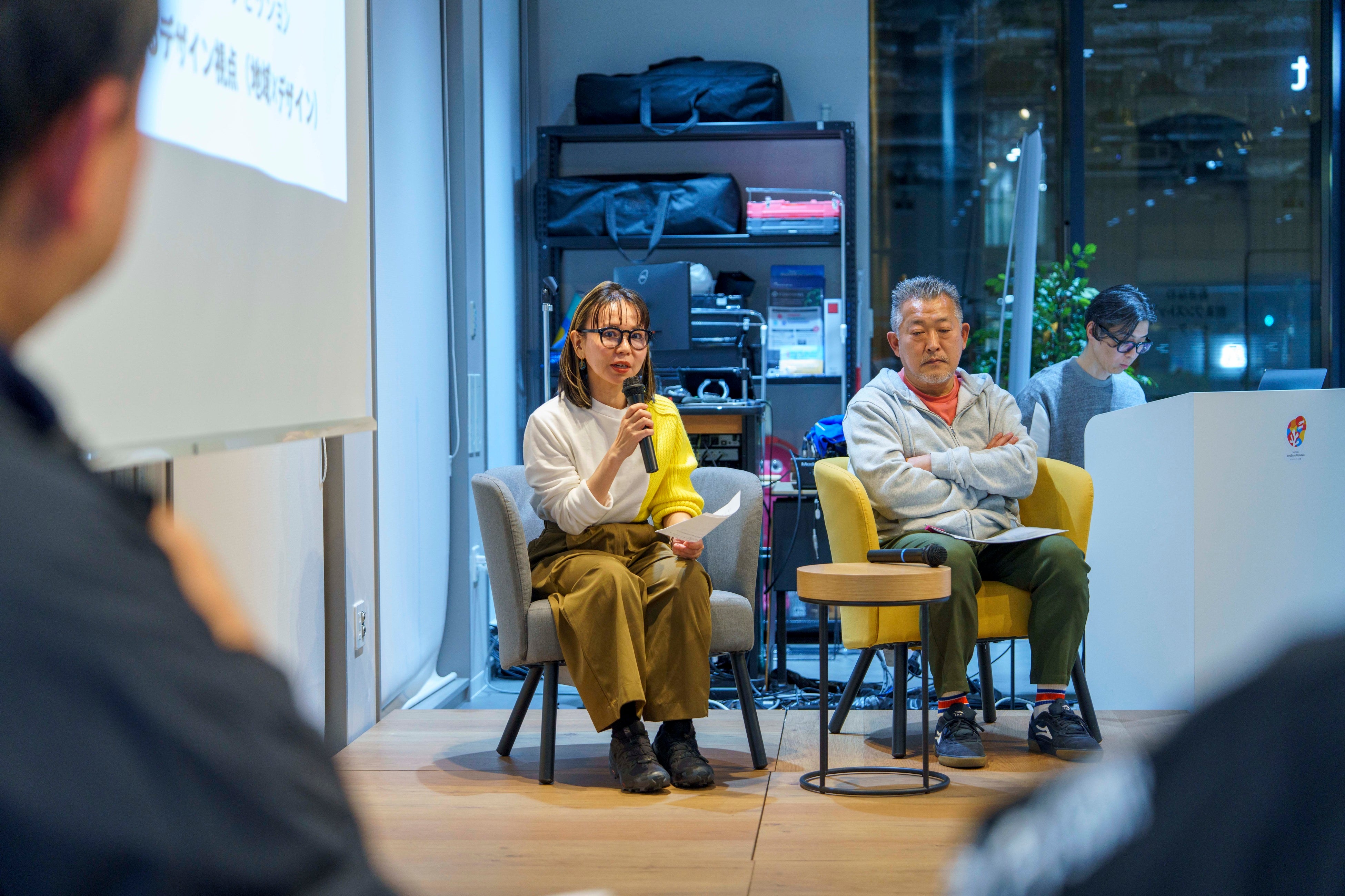 当日は、DIO代表の神里僚子から挨拶を兼ねて、参加者とともに「デザイン」という言葉の目線合わせからスタートしました。