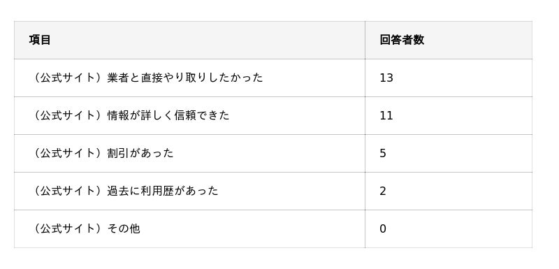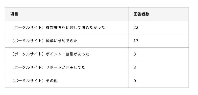 - 「他の業者も比較したい」と考える人がポータルサイト経由、「業者と直接やり取りしたい」と考える人が業者の公式サイトから予約する傾向がある。