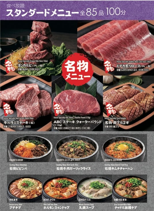 新大久保の韓国グルメ激戦区で「豚サムギョプサル食べ放題」が主流の中、「新大久保初」の牛カルビ・ハラミ・ロースを中心とした本格牛肉食べ放題を実現。