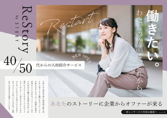 株式会社コペンフラップ(本社:東京都品川区|代表取締役 堀之内千恵)は、ストーリー株式会社(本社:神奈川県川崎市|代表取締役 松尾実里)と共同で、2026年2月に、40代・50代女性の再就職・転職・キャリア再構築を支援するキャリアプラットフォーム「ReStory(リストーリー)」( https://restory-career.com/ )を正式リリースしました。ReStoryは、出産・育児・介護、家族の事情などをきっかけにキャリアの流れが変わった女性たちが、これまでの人生経験を力に変え、自分らしい形で社会と再びつながるための場です。