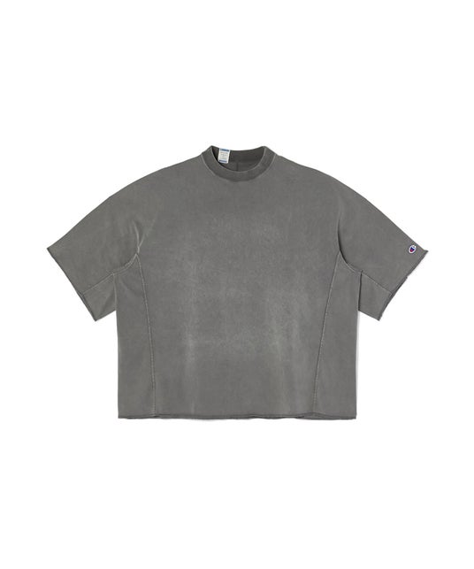 素材にはChampion定番の肌触りの良いコットン100%の天竺素材を使用したショートスリーブシャツです。立体裁断により身体に沿うシルエットで組み上げ、端はロックミシンで仕上げています。左袖にはChampionのCロゴワッペンを配置し、ネック後ろには両ブランドのロゴを組み合わせた専用タグが特徴です。身幅を広くとったボックスシルエットに仕上げています。ガーメントダイ加工により、ヴィンテージの表情を再現しています。