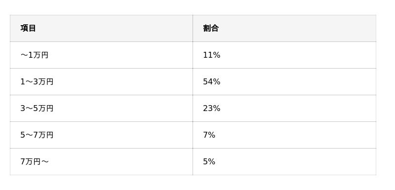 - 1回あたりの費用は「1~3万円」が54%で最多(3~5万円23%、~1万円11%)