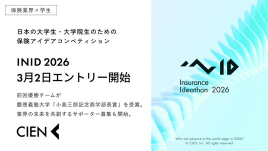 テクノロジーとソリューションとクリエイティビティによる三位一体の価値共創を通じ、Industry Contributor (業界の貢献者)を目指す株式会社Hokanグループ(本社:東京都中央区、代表取締役社長グループCEO:小坂直之、以下:当社)は、グループ会社である株式会社CIEN(本社:東京都中央区、代表取締役社長:小坂直之、以下:CIEN)を事務局として、日本の大学生・大学院生のための保険アイデアコンペティション「INID 2026(Insurance Ideathon)」の開催が決定し、2026年3月2日(月)よりエントリーを開始することをお知らせいたします。