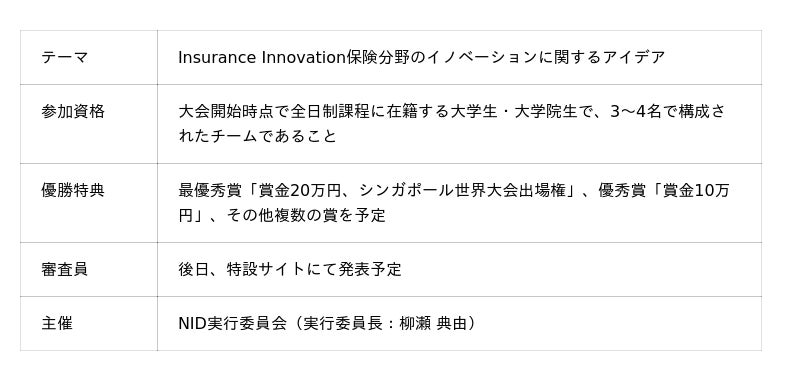 (*1):2025年度開催の世界大会概要)https://www.ntu.edu.sg/irfrc/news-events/events/detail/2025/02/17/default-calendar/the-gaip-insurance-innovation-competition-2025