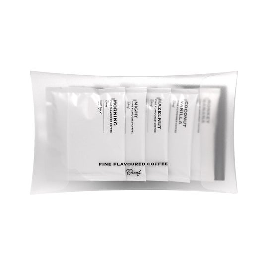 時間帯に寄り添う2種のブレンド(モーニング/ナイト)と、香り豊かな3種のフレーバー(ヘーゼルナッツ/ココナッツバニラ/モンキーバナナ)を一箱に。“今日はどれにしよう”と選ぶ楽しさまで詰め込んだ、満足感たっぷりのアソートセットです。