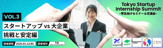 就活支援サービス「ワンキャリア」を運営する株式会社ワンキャリア(本社:東京都渋谷区、代表取締役社長 執行役員CEO:宮下 尚之、以下「ワンキャリア」)は、スタートアップでのインターンシップ・就活の解像度を高める就活生向けオフラインイベント「Tokyo Startup Internship Summit」VOL.3、VOL.4を2026年3月に開催します。