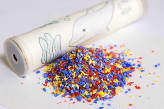 続いて、安全に加工された海洋プラスチック素材を使用して、万華鏡づくりに取り組みます。参加者はまず筒の外側に海をイメージした絵を描き、続いて色や形の異なるプラスチック片を組み合わせながら内部を仕上げていきます。