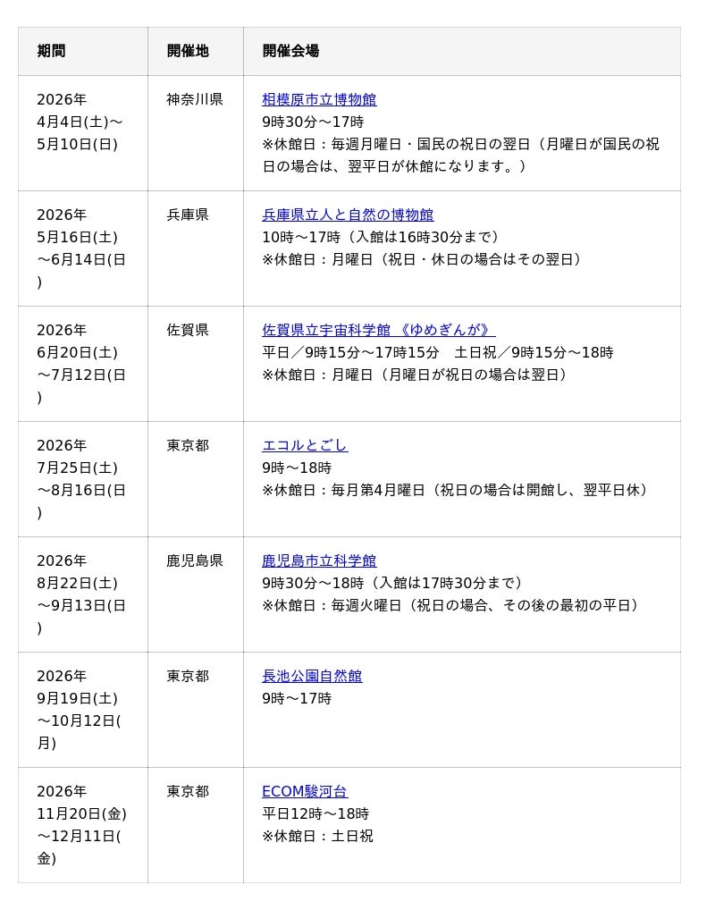 - 各会場の開催期間は下記スケジュールをご覧ください。