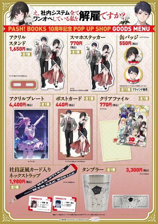 株式会社二葉企画(本社:東京都文京区、代表取締役:小林 伸行)が運営する、漫画・アニメに特化したブランド「Fuuuu」は、『PASH! BOOKS』創刊10周年を記念し、東京・大阪の2カ所でPOP UP SHOPを開催することを発表しました。