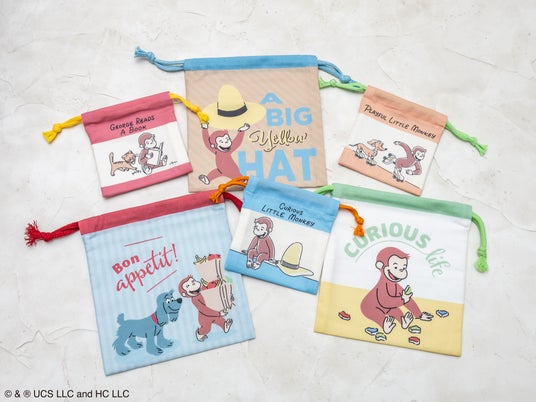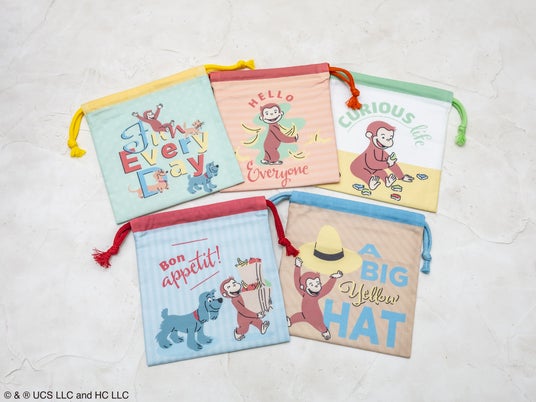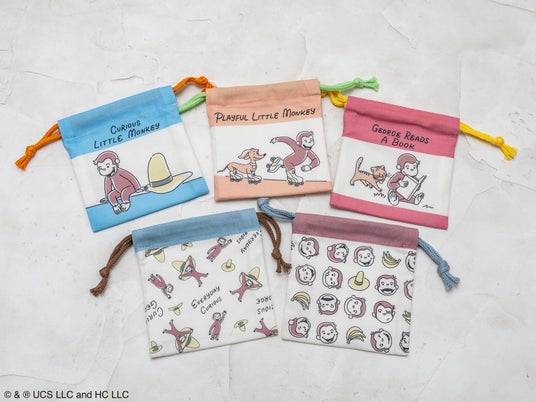 本製品は、パッケージを開けるまでどの柄が入っているかわからない、ブラインド仕様の巾着袋です。 温かみのあるタッチのアートを使用し、 「ジョージ」の愛くるしい表情を描いた全6柄(シークレット1柄含む)を展開します。