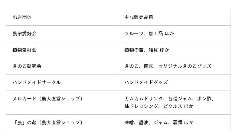 東京農業大学の学生団体や農大直営ショップによる販売会を実施します。