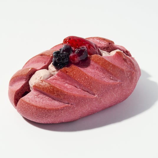 いちごと3種ベリーのヴィエノワ ¥432練りこんだビーツのヴィエノワ生地にいちごクリームを挟みました。