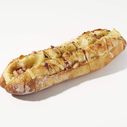 プルアパートブレッド カマンベール&メープル ¥ 648スヴィンゴールドバゲットにカマンベールとベーコンを挟み焼き上げ、メープルシロップをたっぷりかけて仕上げました。