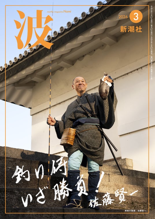 『小説フランス革命』『ナポレオン』など西洋史を材に取った歴史小説の第一人者、佐藤賢一さんがはじめて描く時代小説『釣り侍』(読み:つりざむらい)がこのほど、新潮社より刊行されました。これを記念し、雑誌「波」3月号の表紙に、”釣り侍”に扮した佐藤賢一さんが登場します。佐藤さんは「意外と動きやすい。着くずれることもない。これなら本当に海まで歩いていけそう」とコメント。同誌では村山由香さんと佐藤賢一さんのスペシャル対談に加え、文芸評論家・池上冬樹さんによる『釣り侍』書評も掲載しております。ぜひお近くの書店でお求めください。