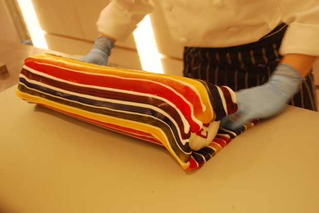 さっきの心配をよそに、明るいレインボーカラーに出来上がったキャンディー。