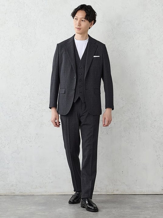 【価格】 ジャケット:19,900円(税別)、ベスト:9,900円(税別)、パンツ:9,900円(税別) 【サイズ展開】 ジャケット SS-LL / AB体M-LL