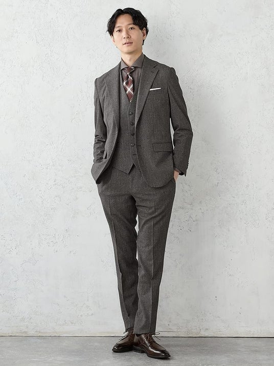 「AVANT(R) AIR デニム調セットアップ」は、着心地の良さと機能性を徹底的に追求した一着です。背抜き仕様のジャケット、ゴム入りでストレッチが効いたワンタックパンツ、そしてTシャツとの相性も抜群のベストの3点は、単品でもセットでも活躍します。プリント加工による清涼感のあるメランジ素材を採用し、定番のネイビーに加え、グレー、ブラウン、ブラックの新色が登場。家庭洗濯可能で手軽にケアができるため、いつでも清潔に着用いただけます。軽量設計とストレッチ素材により、アクティブなビジネスシーンでもストレスフリーな着用感を実現しました。商品概要