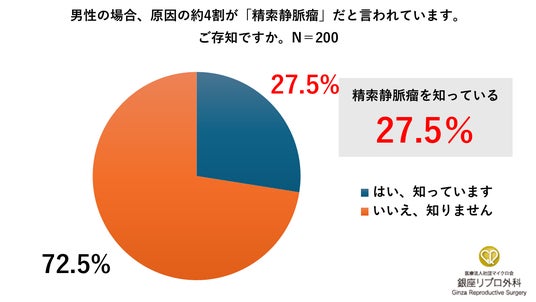 妊活中の女性の精索静脈瘤の認知は3割も満たなかった(銀座リプロ外科調べ)