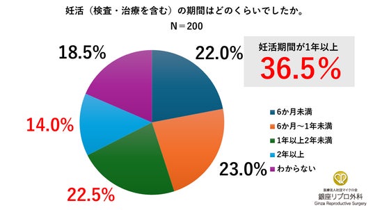 妊活を1年以上続けている女性は4割近くに(銀座リプロ外科調べ)
