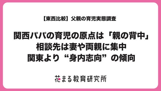 学習塾「花まる学習会」や野外体験イベントなどを通じて、子どもたちの「生きる力を育む教育」を実践する花まるグループ(株式会社こうゆう、本社:埼玉県さいたま市、代表:高濱正伸)が運営する、教育・子育てを取り巻く社会課題を調査・研究する「花まる教育研究所」(URL: https://www.hanamarugroup.jp/edu-lab/ )は、第1弾の関東在住父親223名を対象とした調査に続き、関西在住の父親132名を対象に「父親の育児に対する意識・悩み実態調査」を実施しました。