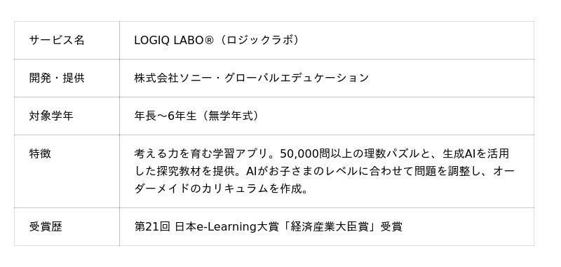 株式会社ソニー・グローバルエデュケーション(代表取締役社長:加藤直樹)が開発・提供する、思考力を育む学習アプリ「LOGIQ LABO(R)(ロジックラボ)」において、年長~小学1年生のお子さま向けの問題を追加し、2026年3月にサービスをリニューアルいたします。