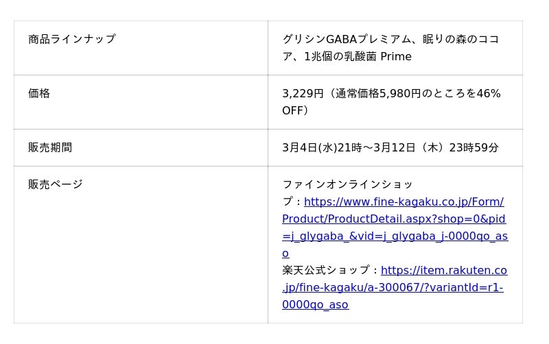 健康食品および医薬品などを製造・販売する株式会社ファイン(本社:大阪市淀川区、代表取締役:佐々木 信綱)は、VTuber/バーチャルライバープロジェクトの「にじさんじ」に所属する風楽奏斗、渡会雲雀とコラボレーションをし、夜のリラックスタイムに寄り添う商品がセットになった「風楽奏斗セット」、「渡会雲雀セット」を3月4日(水)21時~3月12日(木)23時59分までの期間限定で、46%OFFの特別価格にて提供します。