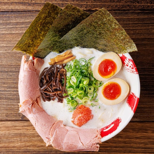 一番軒の豚骨ラーメンは、超高火力(4万5千キロカロリー)でじっくりと炊き上げることで、脂の粒子が きめ細かく混ざり合い、濃厚かつ深みのある旨味を引き出した極上のスープが特徴です。また、数種類の 小麦粉を独自の配合比率で組み合わせた特製麺が、スープと絶妙に絡み合い、一口ごとに至福の味わ いを提供します。