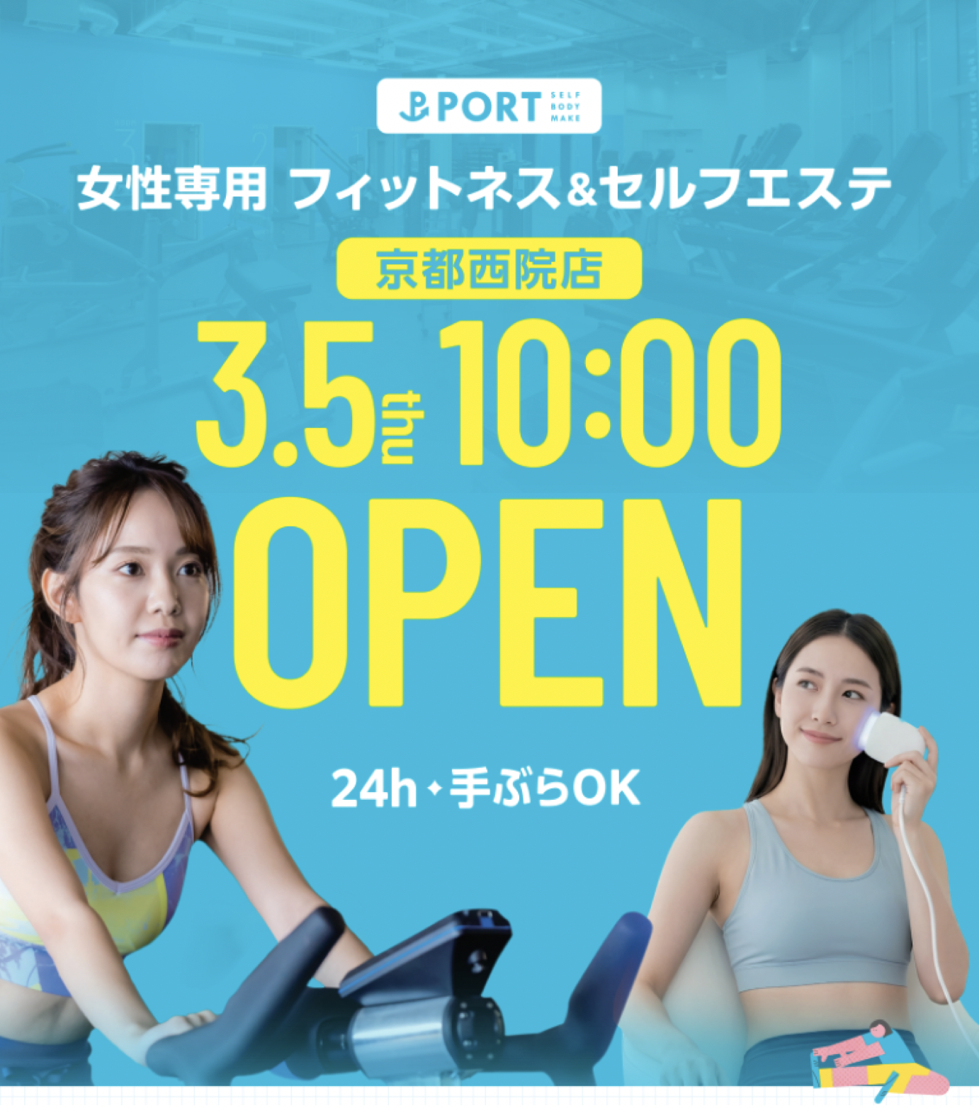 "使った分だけ払う"新発想のフィットネス「PORT」エステマシンも充実!女性専用24時間!京都・西院に3月5日グランドオープンキャンペーン実施中! -