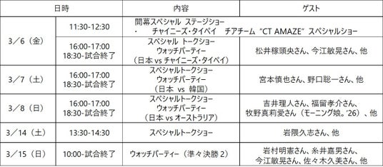 ※3/15(日)のウォッチパーティーは、日本代表が準々決勝に進出しない場合は中止となります。