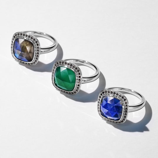 シルバー925リング・ジオメアヘイロー(写真左から)ラブラドライト、グリーンアゲート、ラピスラズリ