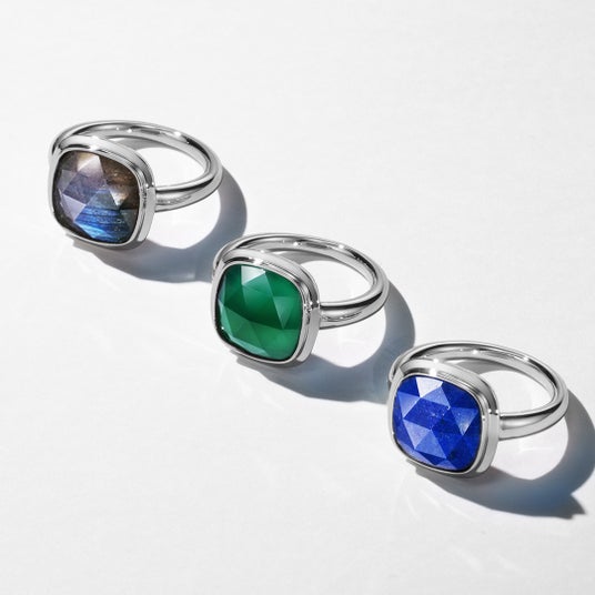 シルバー925リング・ジオメア(写真左から)ラブラドライト、グリーンアゲート、ラピスラズリ